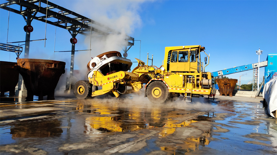 由中冶寶鋼研制的70噸鉸接式抱罐車,采用鵝頸鉸接型式,額定載重75噸,重載最高時速為每小時20公里,翻罐角度105度,最大爬坡能力8%,最小轉(zhuǎn)彎半徑9米。該車型應(yīng)用專利技術(shù)10項(xiàng),在國內(nèi)有色冶煉市場占有率超過75%,先后榮獲中國有色工業(yè)協(xié)會、中國鋼鐵工業(yè)協(xié)會科技獎,中國施工企業(yè)管理和中國循環(huán)經(jīng)濟(jì)協(xié)會專利獎等榮譽(yù)。